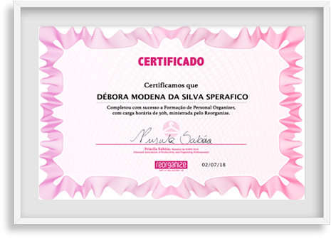 Possuo certificados Nacionais e Internacionais em diversas áreas como profissional Personal Organizer.