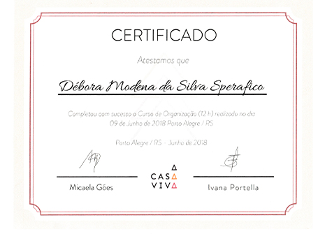 · Curso de Personal Organizer pelo SENAC Caxias do Sul;